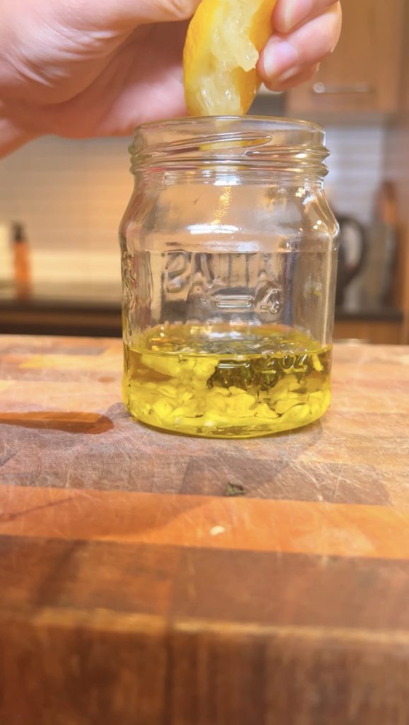 The lemon thyme vinaigrette can be made ahead and stored in the fridge. I like using both lemon juice and zest for extra flavor, but you can absolutely stick to juice only if that’s what you have.