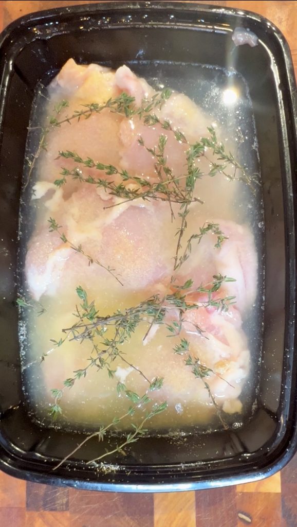 It’s fresh, filling, and layered with flavor without feeling heavy. The chicken is brined so it stays juicy, the spiced pecans add crunch and sweetness, and the lemon thyme vinaigrette keeps everything light and bright.