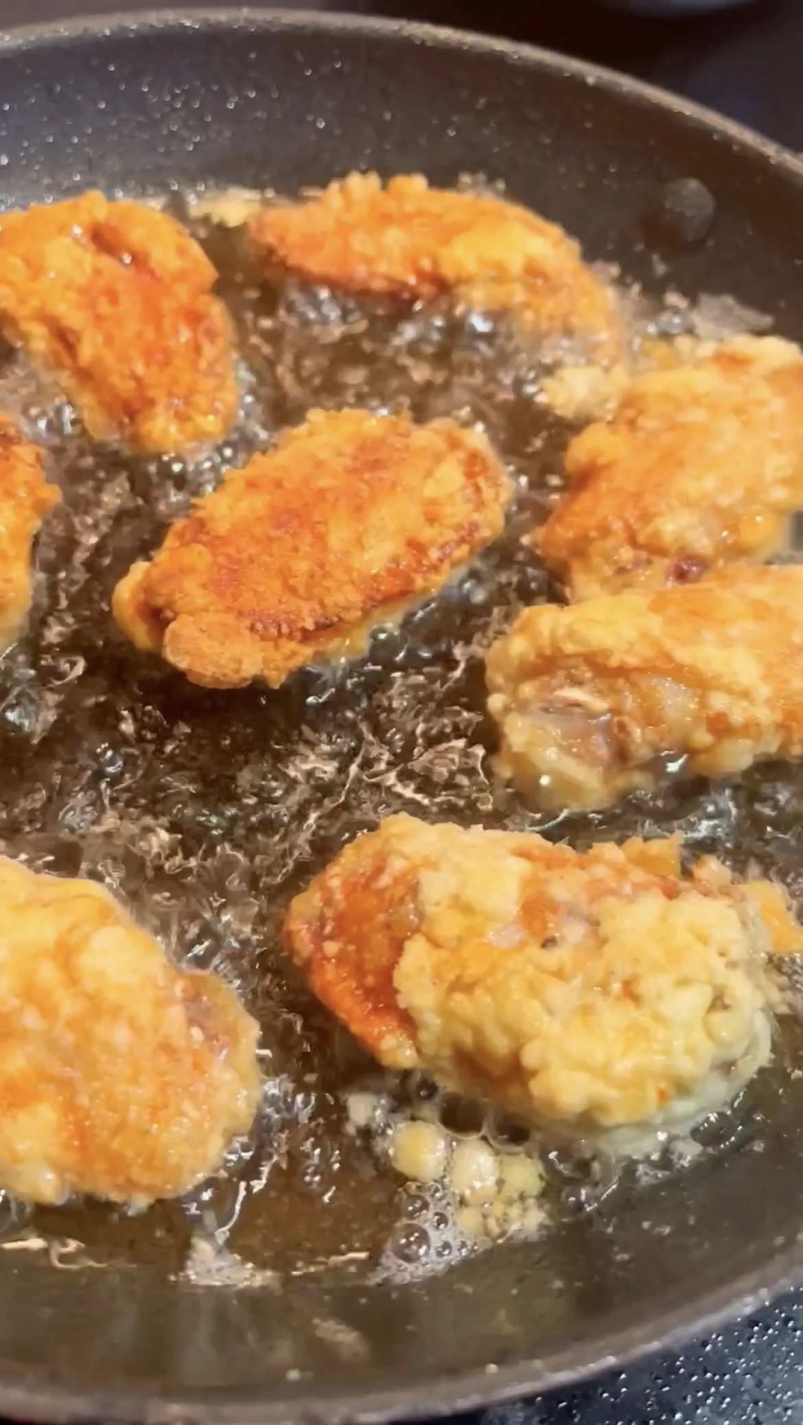 Increase oil temperature slightly to 375°F (190°C). Fry chicken again for 2–3 minutes until deeply golden and extra crispy.
