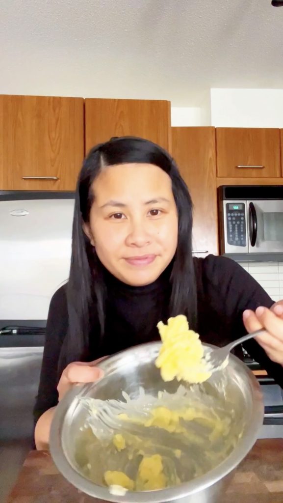 - Mash cold butter and add a little melted butter if you don’t want to wait for it to soften.